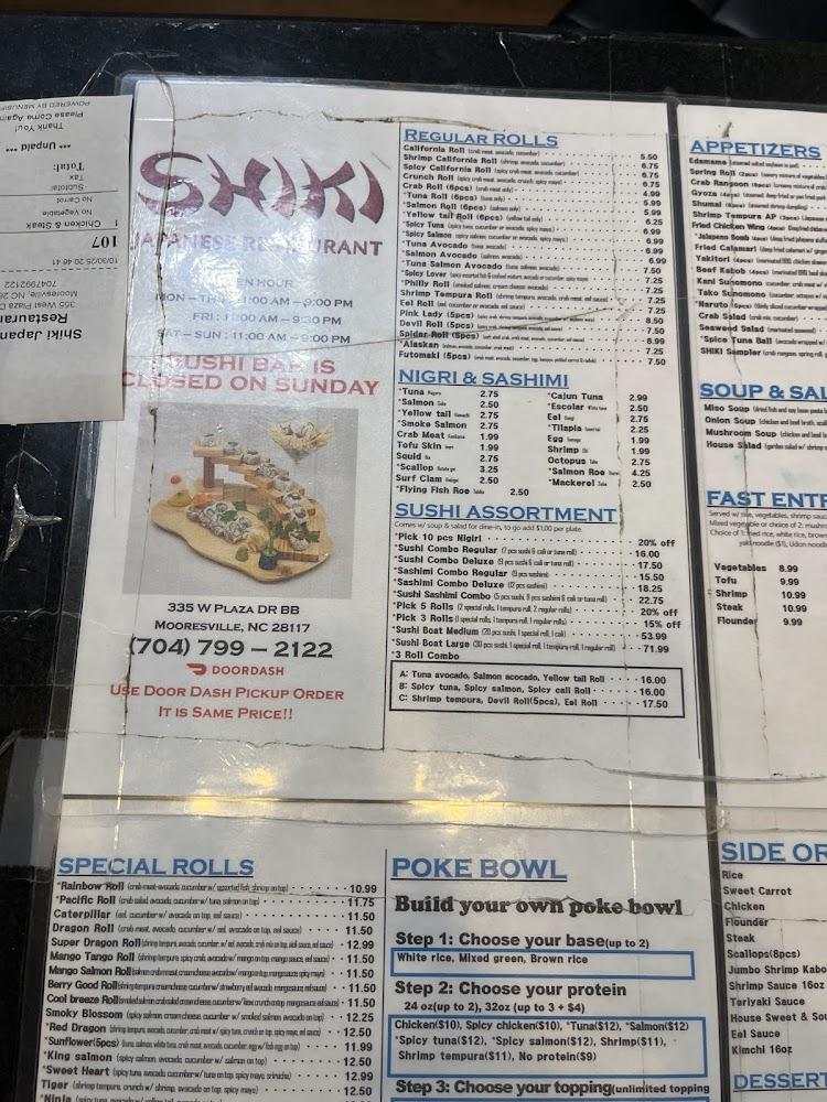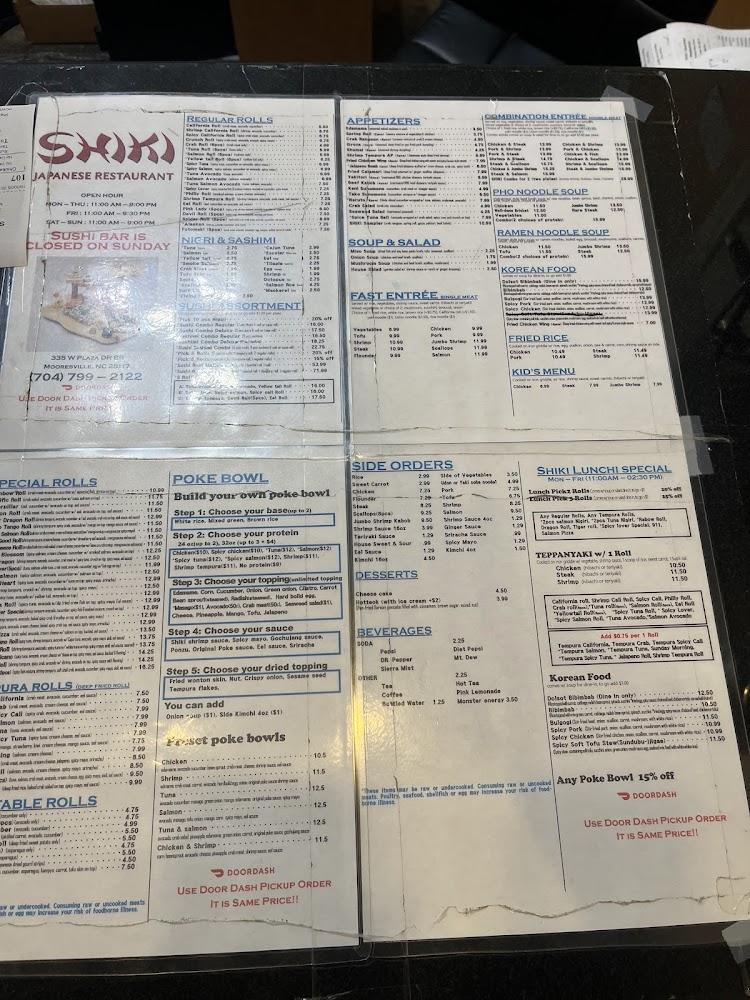 Shiki offers an extensive menu that caters to a variety of tastes. Signature items include hibachi, sushi rolls, and traditional ramen, ensuring everyone finds something satisfying.
